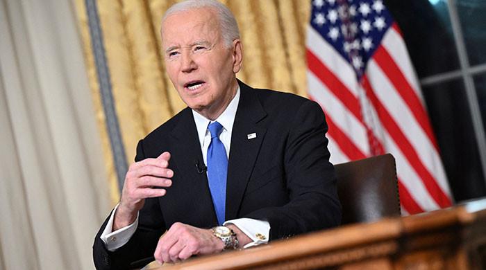 US President Joe Biden gestures as he delivers his farewell address to the nation from the Oval Office of the White House in Washington, DC, on January 15, 2025. — Reuters