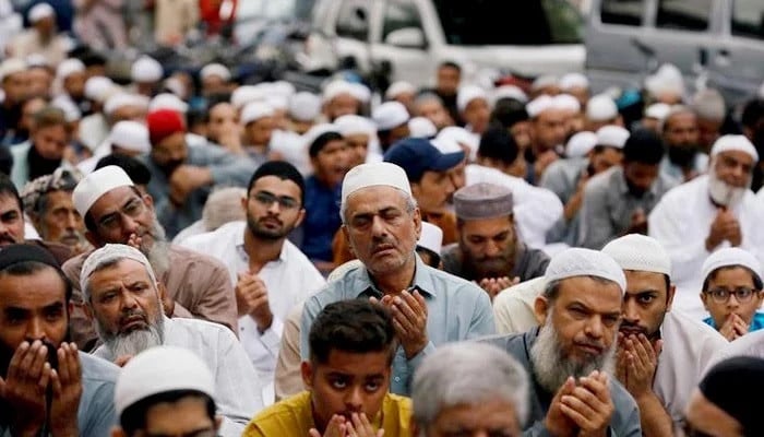 Men attend Eid prayers outside a mosque along a street in Karachi, Pakistan. — Reuters/FileNationwide Eid prayers held at mosques, Eidgahs, open venues.Eid marks end of Ramadan and the spirit of worship and sacrifice.Special prayers offered for national progress, Muslim Ummah...from Pakistan - Geo News https://ift.tt/CrQZFN8